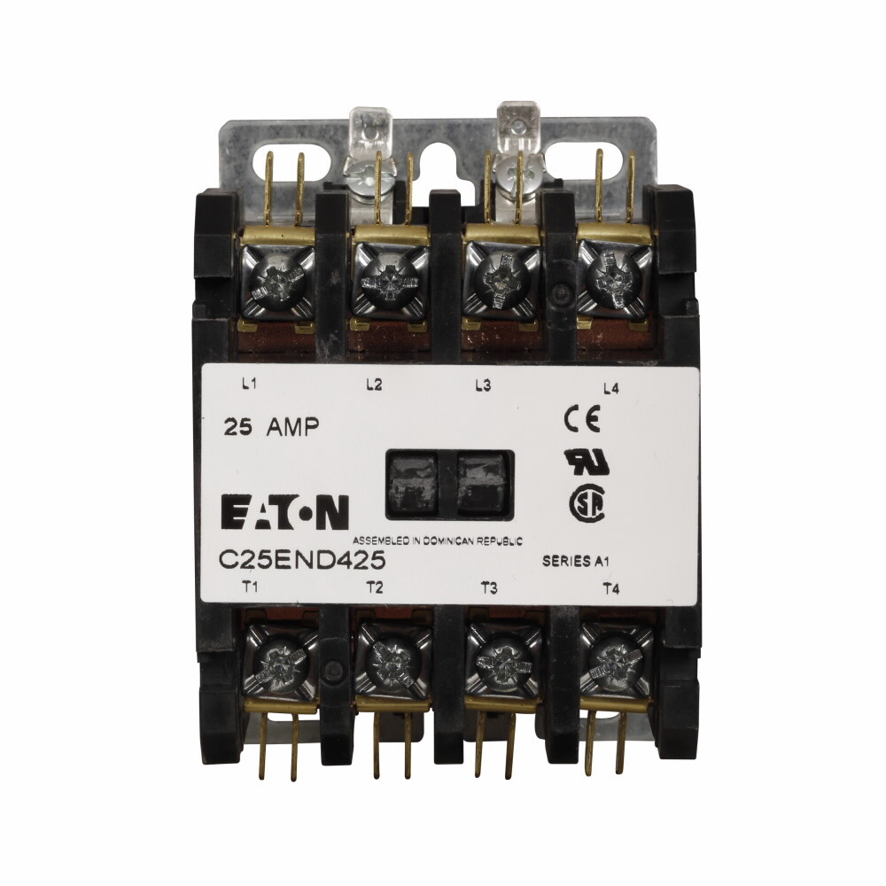 • Extended Description: Eaton Definite purpose control contactor, Non-reversing, Four-pole, 30A, 110-120 Vac, 50/60 Hz, Open with metal mounting plate, Screw/pressure plate and quick connect terminals (side-by-side), 30A IFL, 40A RL