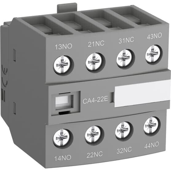 • Extended Description: The auxiliary contact blocks are used for the operation of auxiliary circuits and control circuits for standard industrial environments.Types of auxiliary contact blocks for front mounting:? CA4 1 or 4-pole block, with instantaneous N.O., N.C. contacts? C