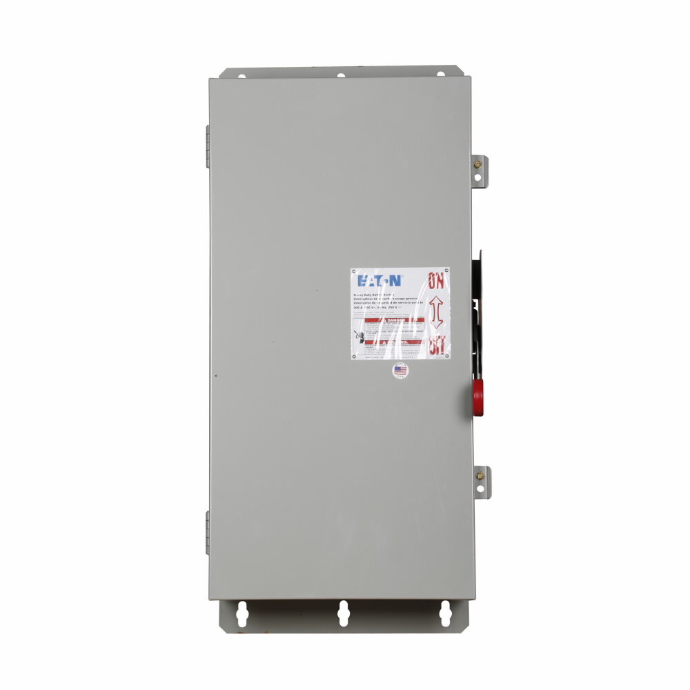 • Extended Description: Eaton Heavy duty single-throw fused safety switch, 200 A, NEMA 12/3R, Painted galvanized steel, Class H, Fusible without neutral, Three-pole, Three-wire, 600 V, Max Hp: 50, 50/ 125, 150 hp (1/3PH @480, 600 V), #6-300 kcmil Cu/Al