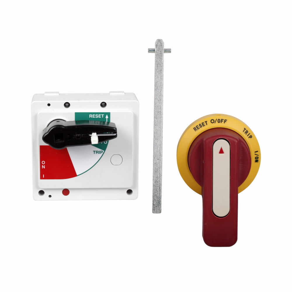 • Extended Description: Eaton molded case circuit breaker accessory handle mechanism, Universal rotary through-the-door handle mechanism, JG-Frame, Frame J-K, Red, Series G, 6 in