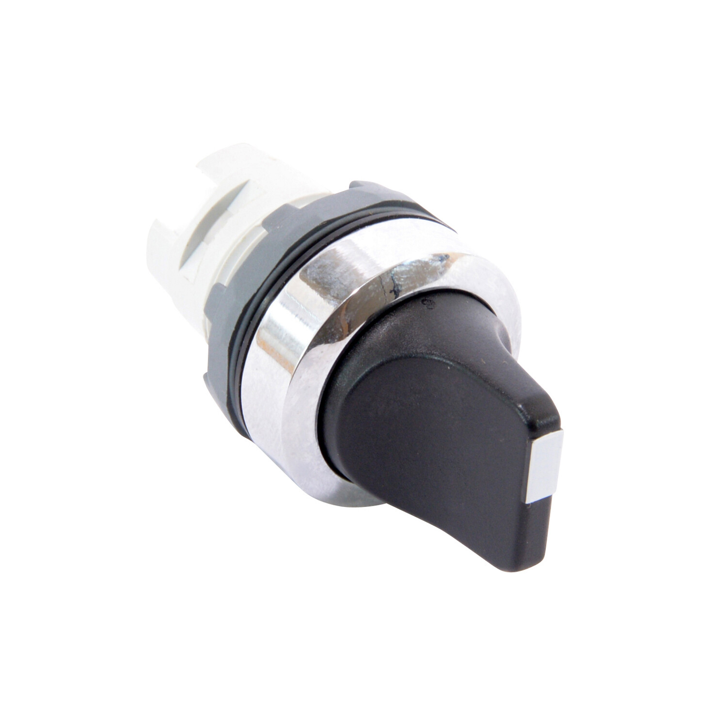 • Extended Description: Modular Selector Switch - 2-Pos Maintained - Short handle - Black - Non-illuminated - Chrome metal - No contact block