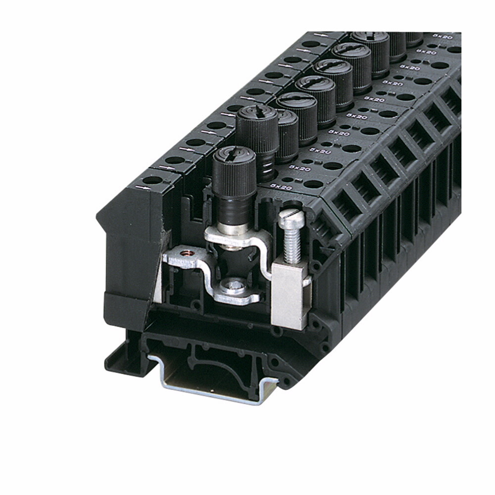 • Extended Description: Eaton XB IEC terminal block, Fuse Terminal Blocks for 5 x 20 mm fuse, Screw Connection Fuse Terminal Blocks, XBUK10FBC, Black, IEC Fuse #20-4 AWG, IEC Disconnected #20-6 AWG, EL #22-6 wire