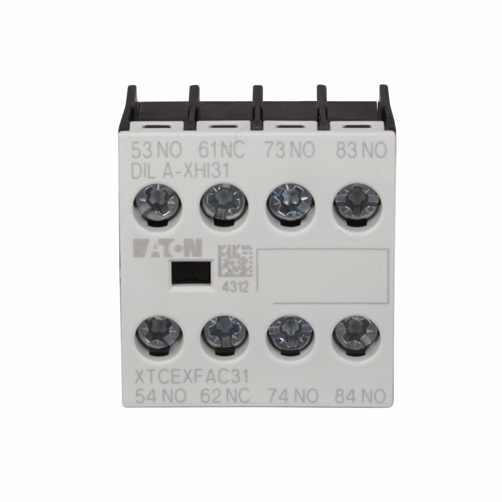 • Extended Description: Contactor Accessory - Auxiliary Contact, Four-pole, Screw terminals, 3NO-1NC contact configuration, 16A conventional thermal rating, 6A at 220/230/240V, 3A at 380/400/415V, 1.5A at 500V rated operational voltage, Front mounting