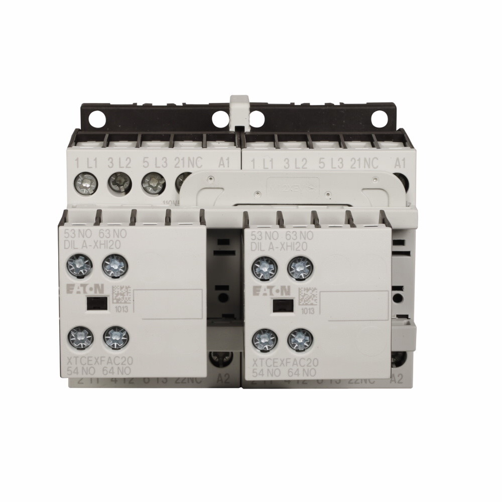 • Extended Description: Eaton XT IEC contactor, 18A, 24-27 Vdc, 2NO-2NO, 18A, Frame C, 45 mm, 2, 3/ 5, 5, 10, 15 hp (1/3PH @115, 230/200, 230, 460, 575 V), Three-pole, Reversing, XT IEC series, Screw terminals, Full voltage reversing contactor